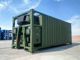 Our standard shelters are based on a 20 foot ISO container footprint and we provide several variants like sanitary shelters, workshop shelters and command posts.